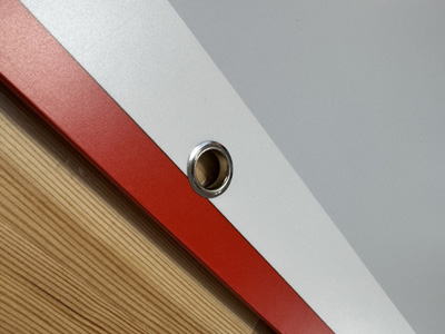 アルミ複合板の看板背面の写真です シートを背面に巻き込み施工 取付しやすくハトメ施工 |