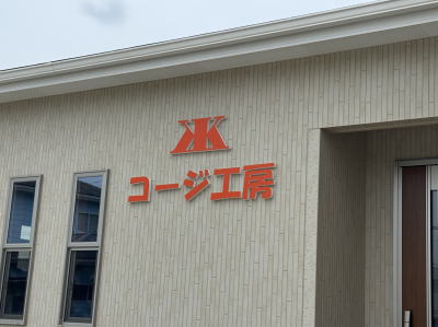 | コージ工房の看板をカルプ文字30mmにて制作しました。 表面のオレンジ色はカッティングシートを貼り付けています。 |